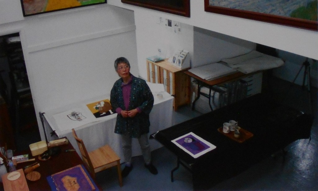 With my great knowledge of woodblock printing (or so I thought) I returned to England in 1980 where I met and married Geoffrey Wickham, a sculptor, painter and lecturer who taught me about art and artistic expression. I expressed the opinion that woodblock printing was easy, with which he disagreed. How right he was. Even now after 44 years of printmaking I still find something new every time I work in my studio which Geoffrey and I set up in 1986.