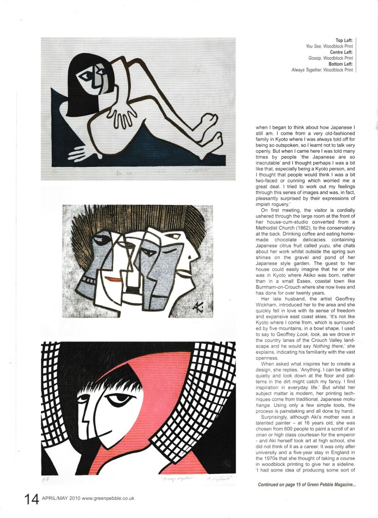 Amazingly, she only entered the field when she was 30. She originally studied English language and literature and, as a diversion before returning to England, enrolled in a woodblock printing course at the Kyoto Asahi Culture School. There, under the tutelage of renowned woodblock printer Takeji Asano, now 96 and once a friend of Picasso’s, she rapidly became, in the master’s own words, the “best student” he had ever had.
