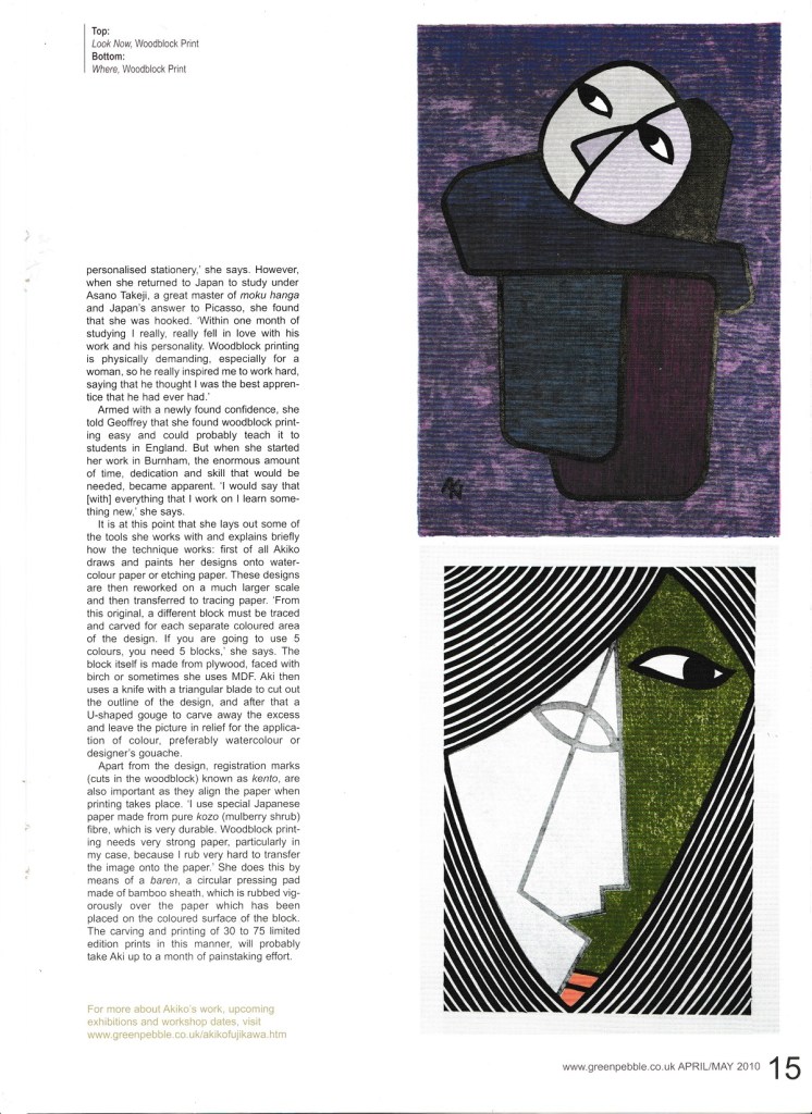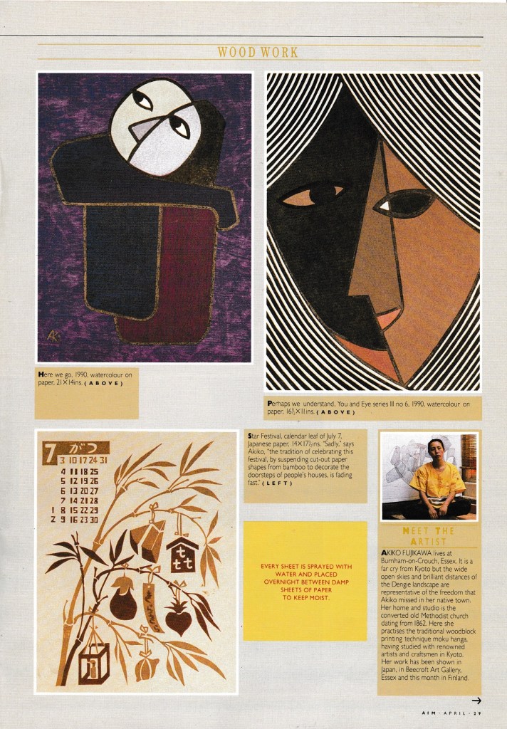 “Her works are very exciting, and she continues to innovate with her printing techniques,” said established woodblock printer Richard Keith Steiner of Fujikawa’s exhibition, “You and Eye”, now showing in Tachikichi Studio Com. in Shimogyo Ward, Kyoto. The 48 year-old Fujikawa already has collections in Finland, Germany and France, and the British Museum recently purchased several of her prints for their archives.